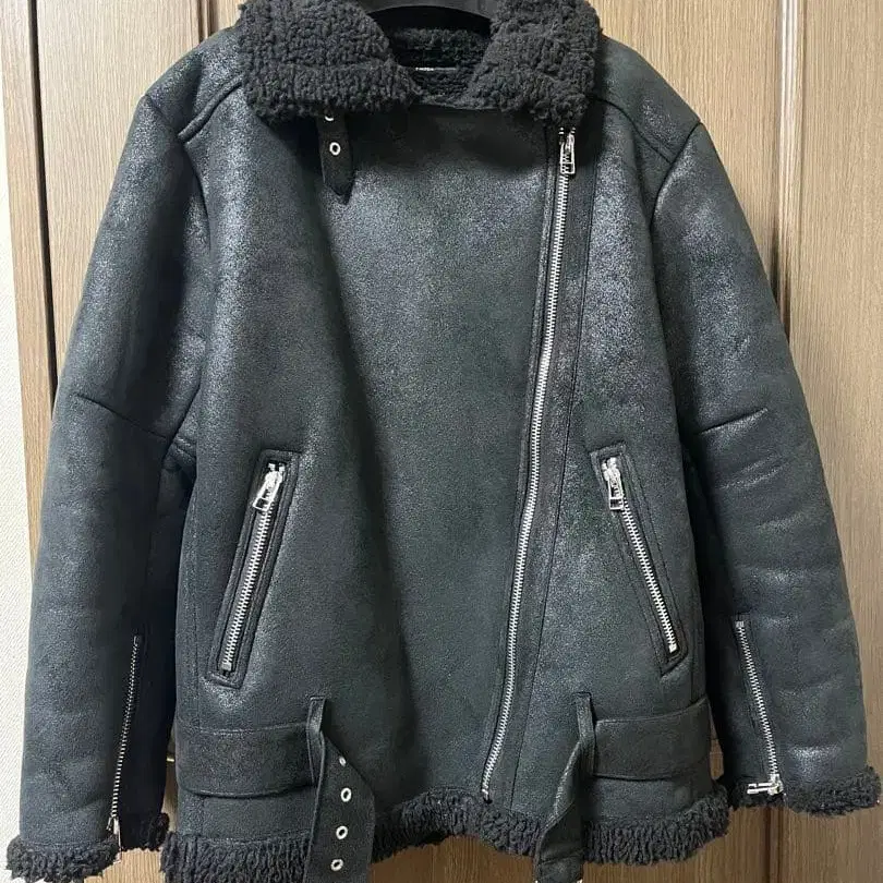 블랙 가죽 라이더 자켓 EMODA