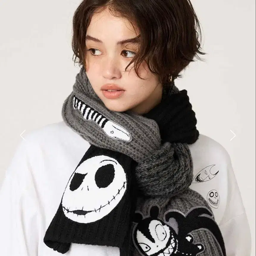 큼직한 질감이 귀여운 로 게이지 니트 머플러입니다.