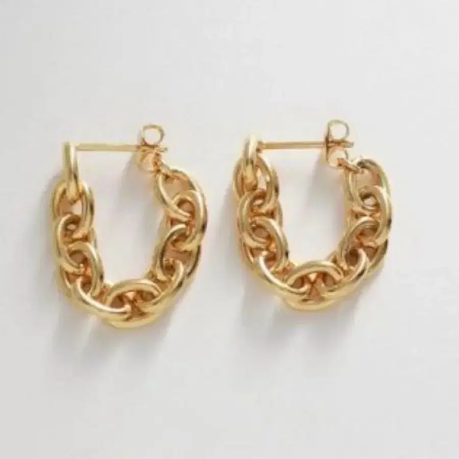 미사용 COCOSHNIK 실버 체인 귀걸이 오벌 링크 후프
