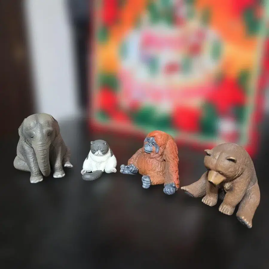 동물 잠자는 피규어 세트 (코끼리, 곰, 오랑우탄, 고양이)