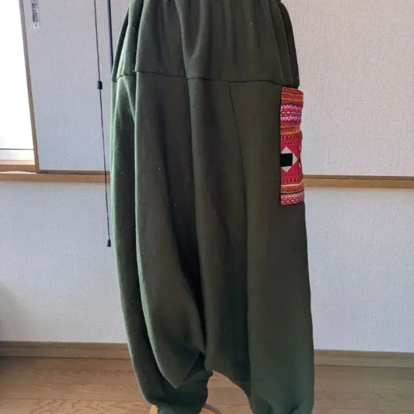 남녀 공용 몽족 원단 포켓 속기모의 따뜻한 사루엘 팬츠 카키a