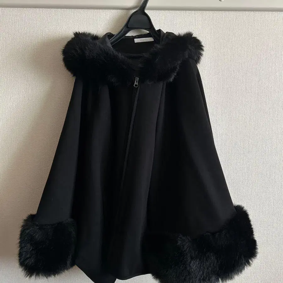 FENNEL 블랙 후드 부착 케이프 코트