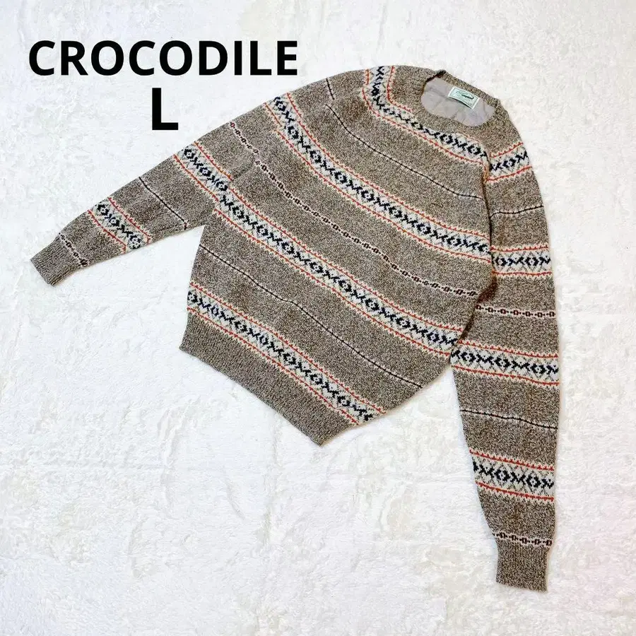 크로커다일 스웨터 니트 보더 울 혼방 페어아일 자수 로고 L