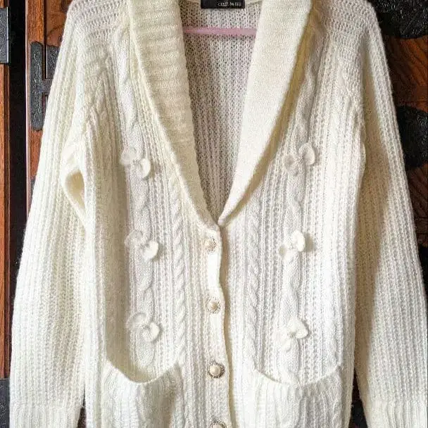 CECIL McBEE 펄 리본 니트 가디건 자켓 겉옷