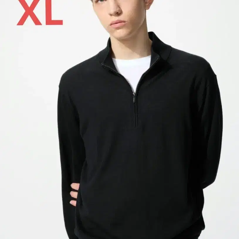 유니클로 메리노 하프 지퍼 스웨터 블랙 XL