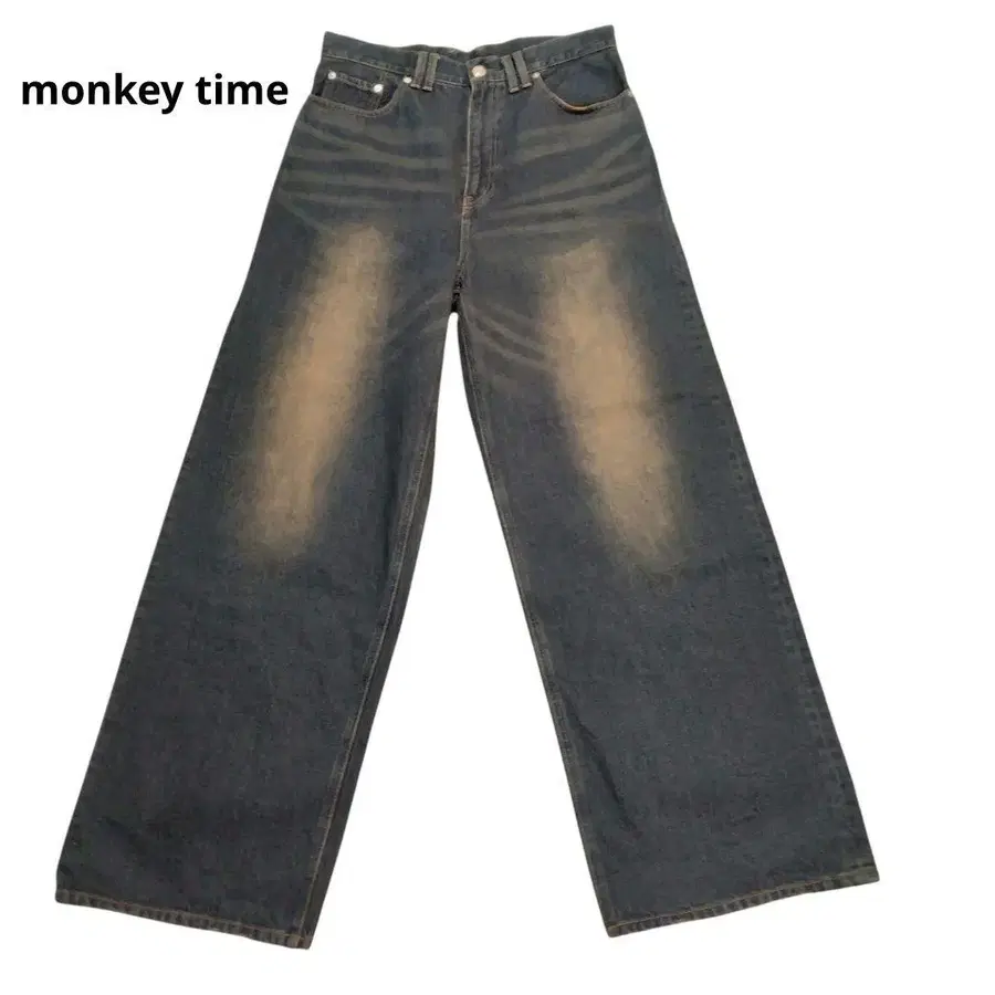 monkey time 다크 블루 와이드 배기 데님 팬츠