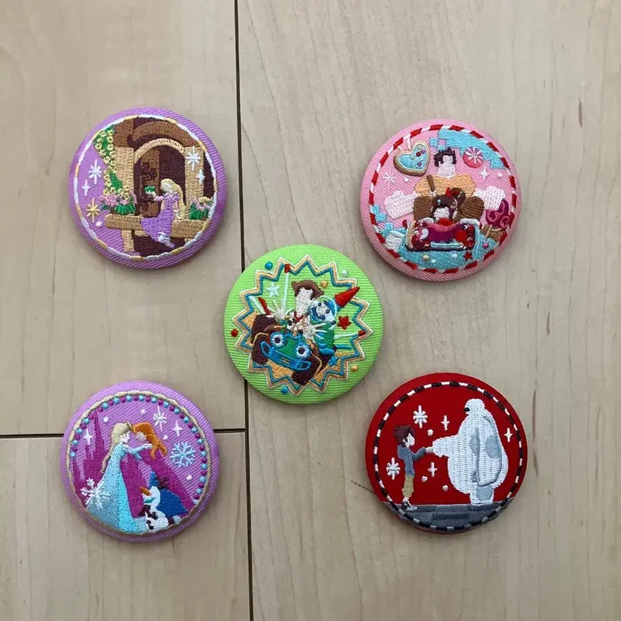 디즈니 자수 캔 배지 5개 세트