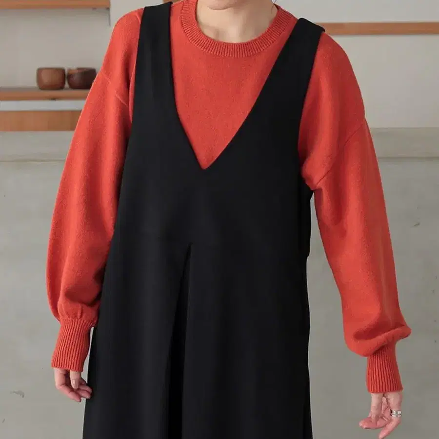 오샤레 워커 뽕긋 소매 니트 오렌지