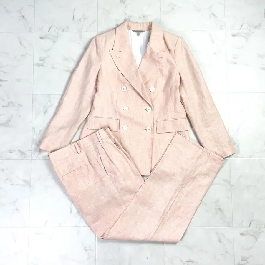 자동 번역되었어요. 원문보기새상품급 BANANA REPUBLIC 바나나리퍼블릭 린넨 셋업 수트 DB 테일러드 자켓 슬랙스 여성용 핑크 사이즈 4*LD23
