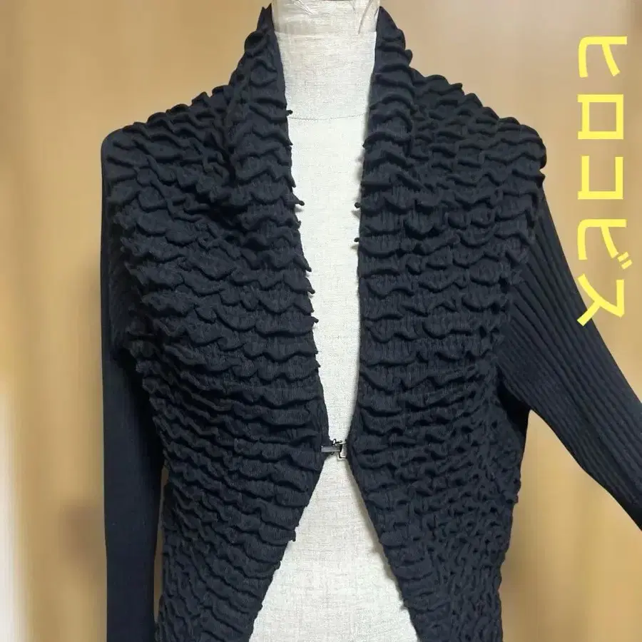 히로코비스 울 혼방 니트 가디건 쿠슈쿠슈 프릴 디자인 블랙 9호