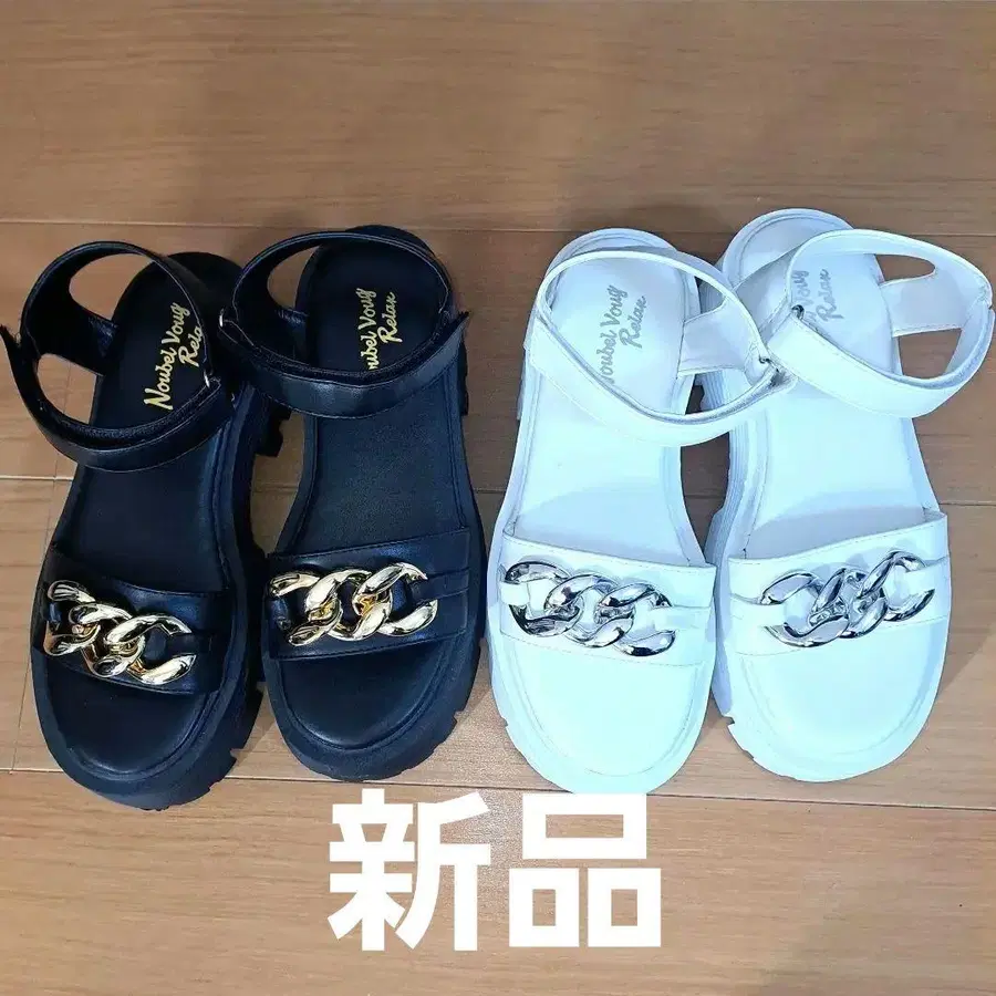 체인 장식 샌들 블랙 화이트 2켤레 세트