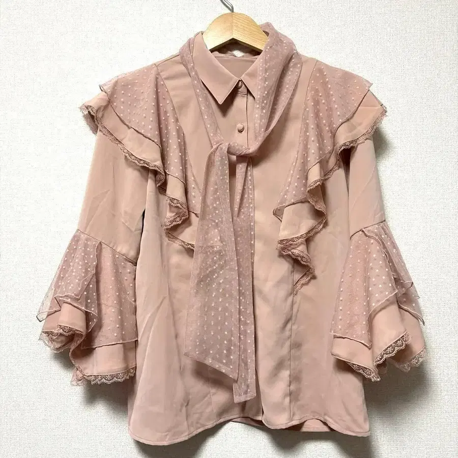 axes femme 도트 튤 리본 공주 소매 블라우스
