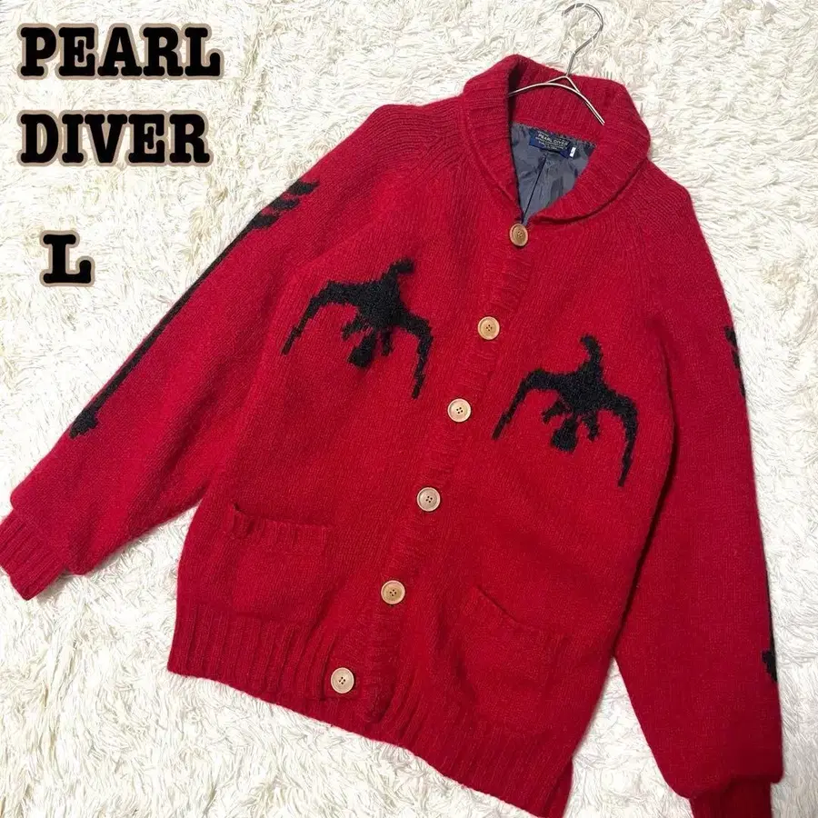 펄 다이버 니트 자켓 카우친 스웨터 L 빨간색 레드