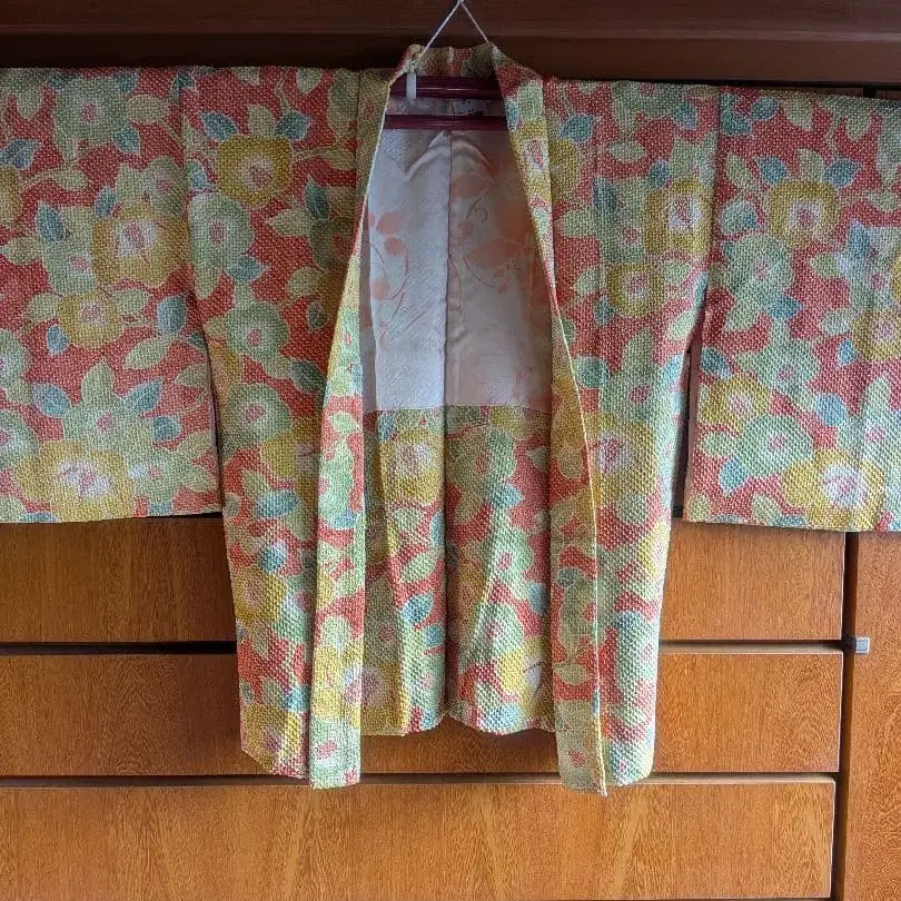 앤티크 다이쇼 로망 총 시보리 동백꽃 패턴 겉옷