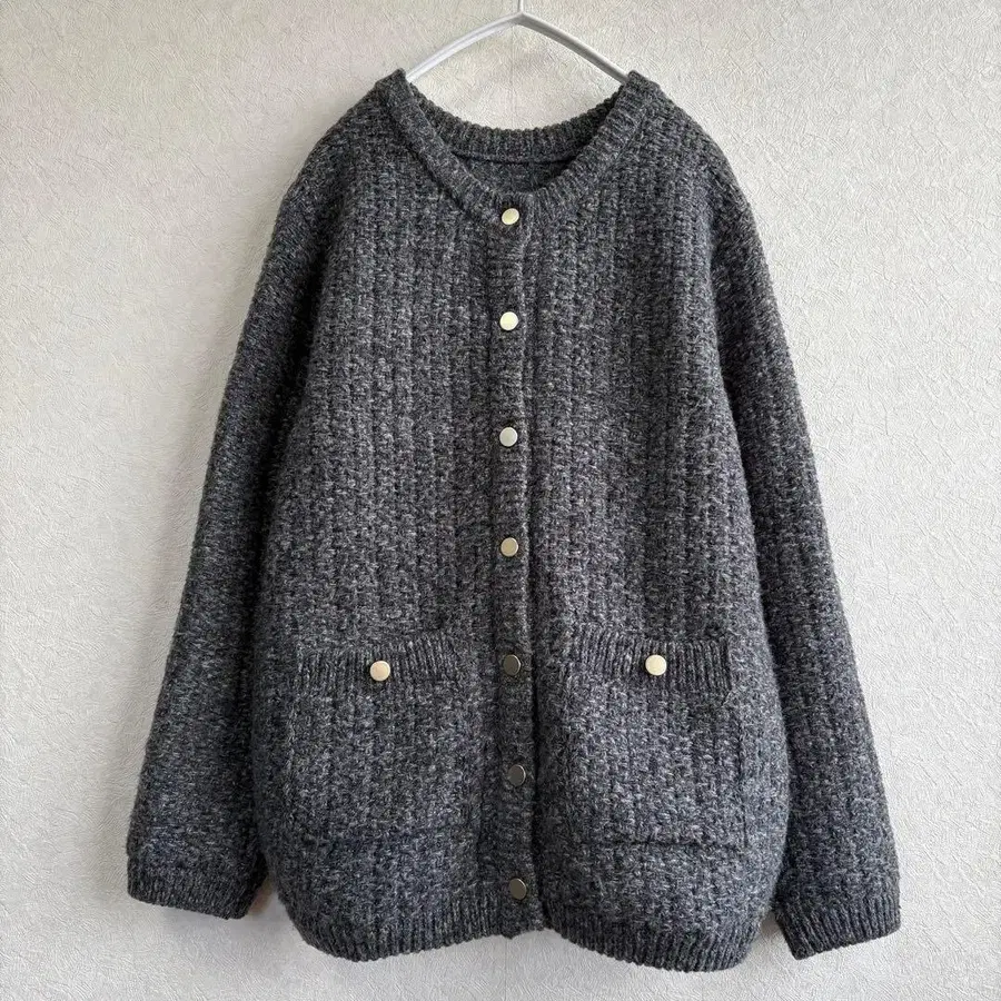 un dix cors 그레이 두꺼운 원단 트위드 니트 가디건 골드 버튼