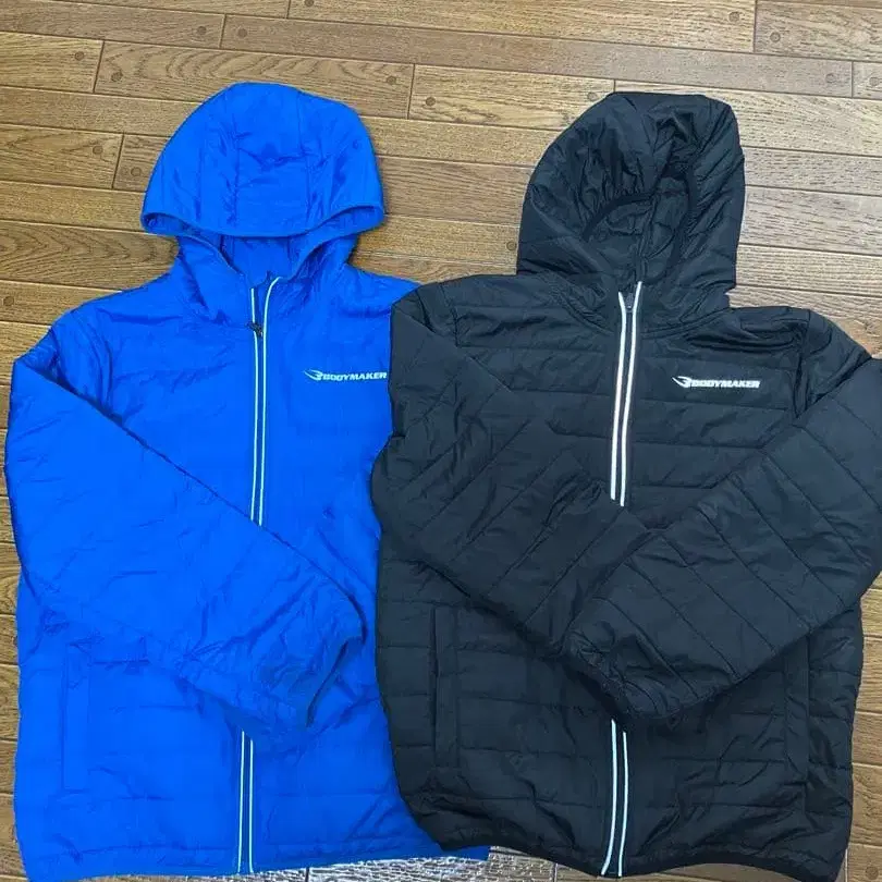 바디 메이커 얇은 소재 다운 블랙, 파랑 2장 세트 L 사이즈