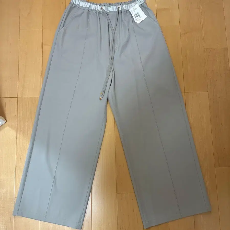 Jena 와이드 팬츠 허리밴딩 드로우 스트링 포함 그레이