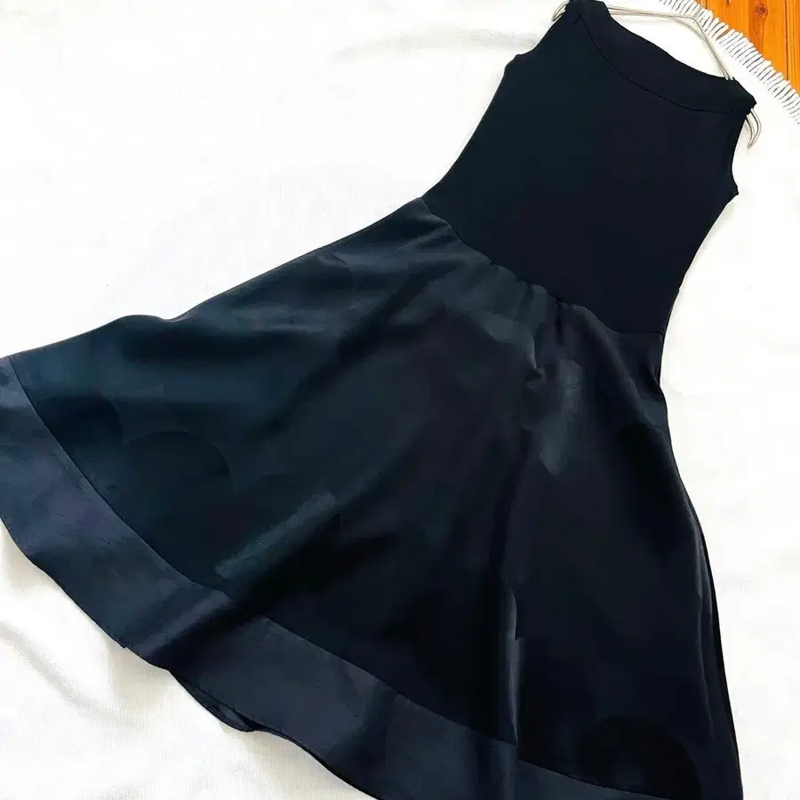 블랙 슬리브리스 도트 플레어 드레스 도킹 원피스