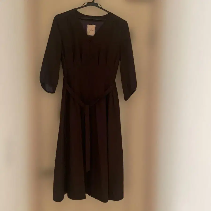 시빌라 다크 브라운 V넥 무릎 기장 원피스