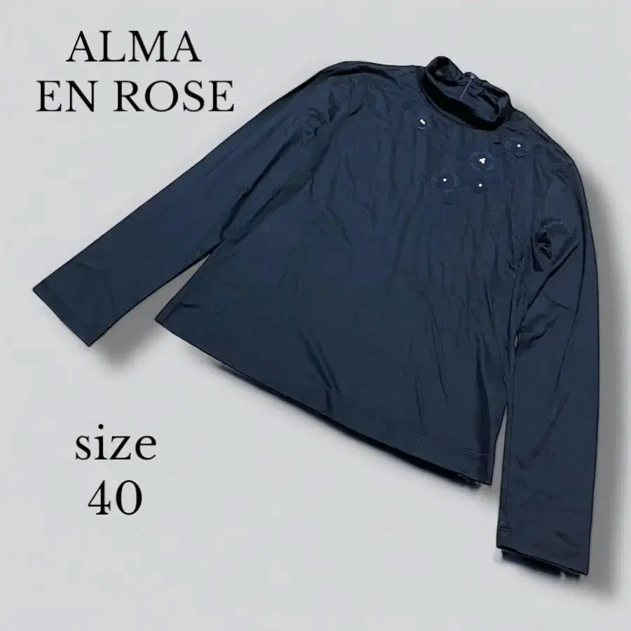 [ALMA EN ROSE] 꽃무늬 자수 하이넥 티셔츠 40 다크 네이비