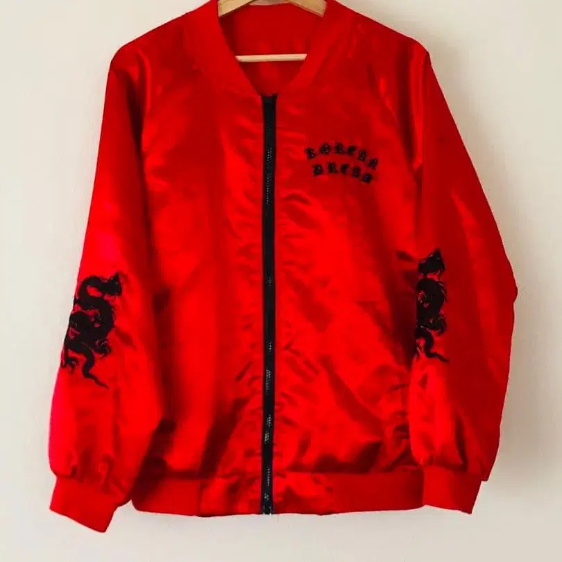 KOREA 용 자수 스카잔 빨간색 L 새상품급