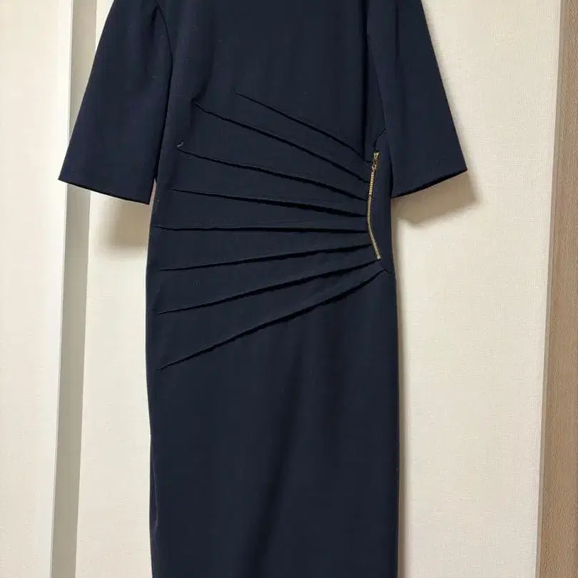 네이비 무릎 기장 원피스 반팔 골드 지퍼