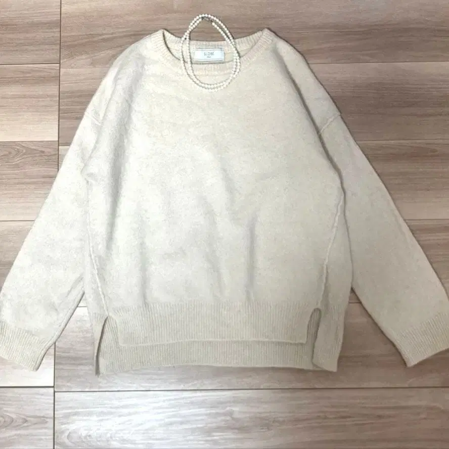 새상품급 슬로브 이에나 풀오버 니트 사이드 슬릿 베이지