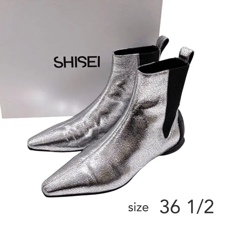 새상품급 SHISEI 시세이 ADORE 취급 가죽 사이드 고어 부츠 실버