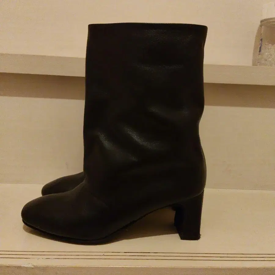 ALPHA CUBE 천연 가죽 블랙 부츠 중간 힐