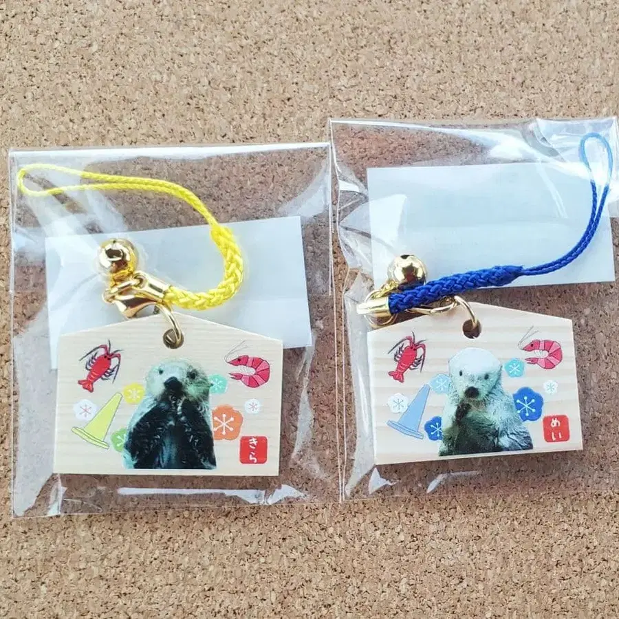 도바 수족관 해달 메이짱 키라짱 미니 에마 키링 2개 세트