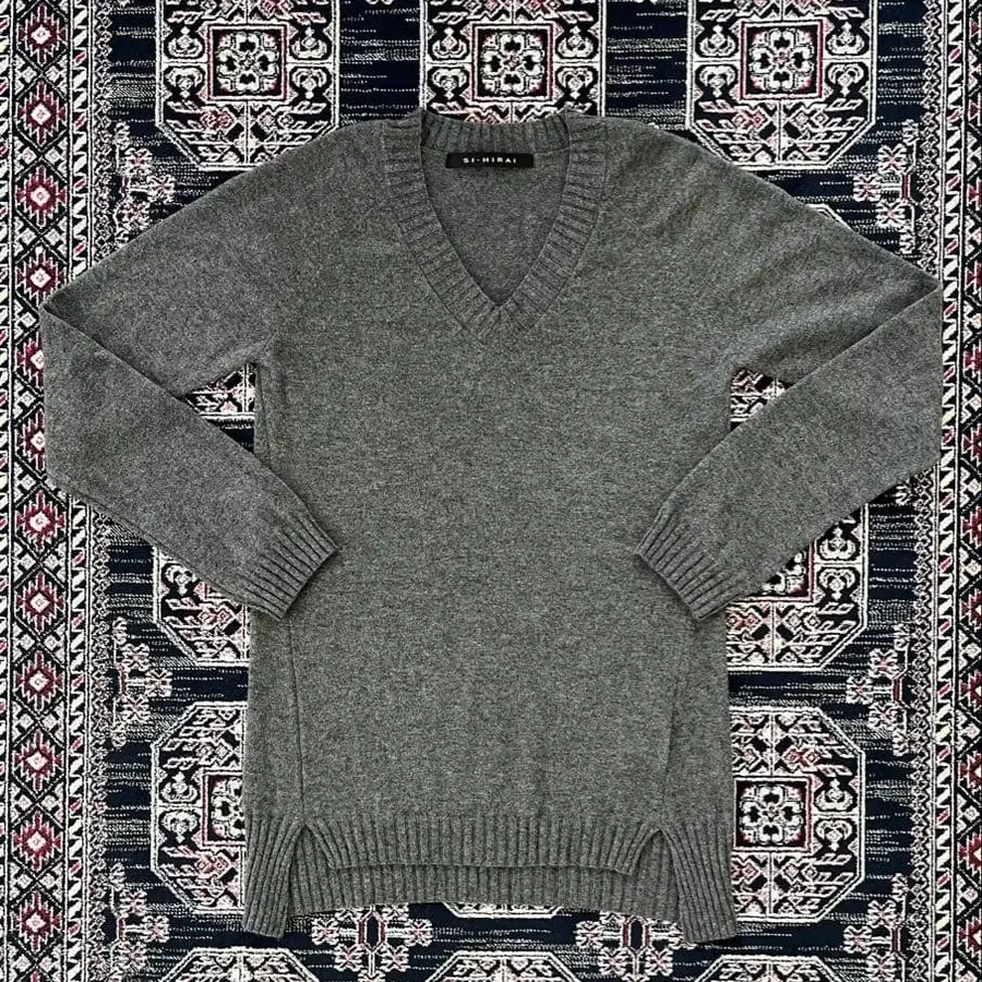 SI-HIRAI 그레이 V넥 래글런 니트 스웨터