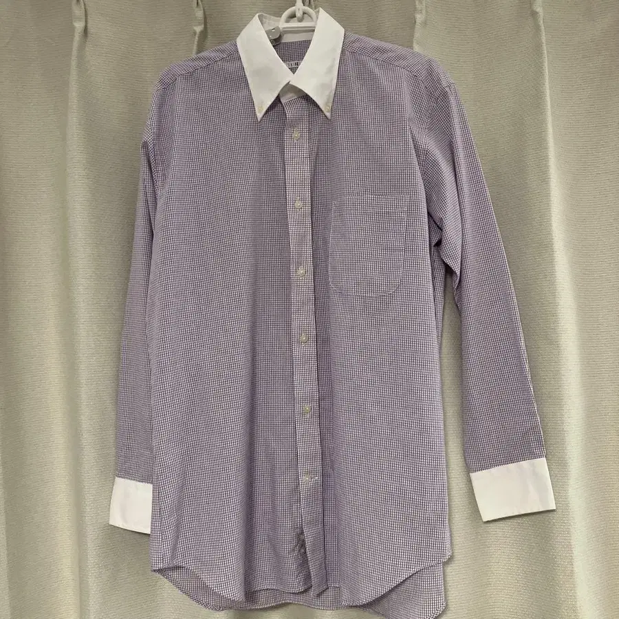 보라색과 화이트 체크 무늬 긴팔 와이셔츠 82cm L 사이즈