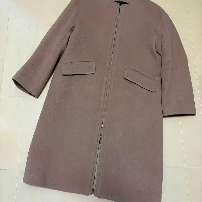 새상품급 주얼 체인지즈 울 노카라 코트 브라운 카멜 38