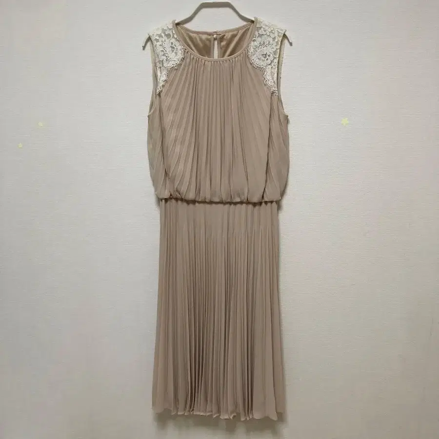 ANAYI 베이지 플리츠 슬리브리스 원피스