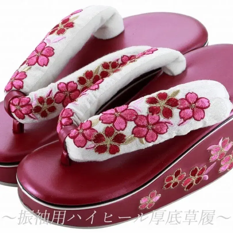 [새상품] 성인식 후리소데용 럭셔리 자수 하이힐 통굽 조리 프리 사이즈
