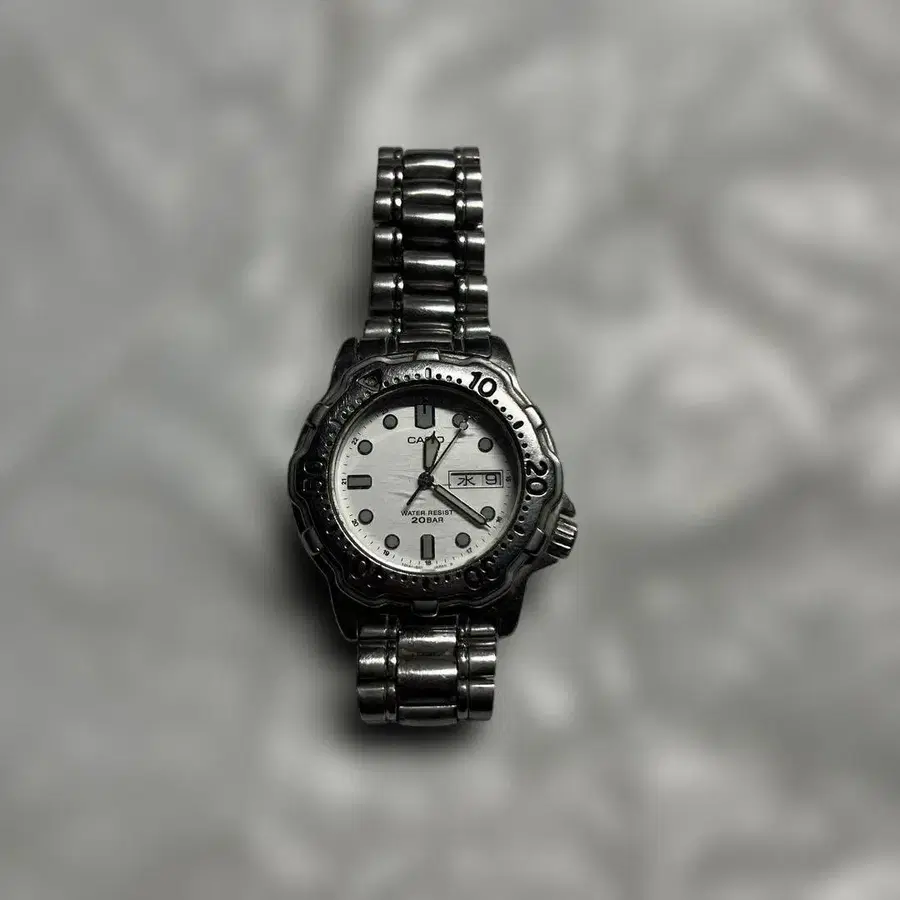CASIO 카시오 MD-747 손목시계 화이트 다이얼 쿼츠 회전 베젤