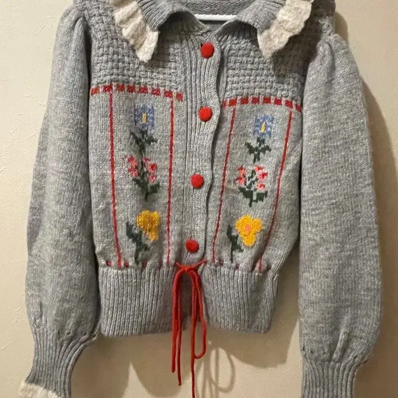 ZARA 꽃무늬 자수 그레이 가디건 L