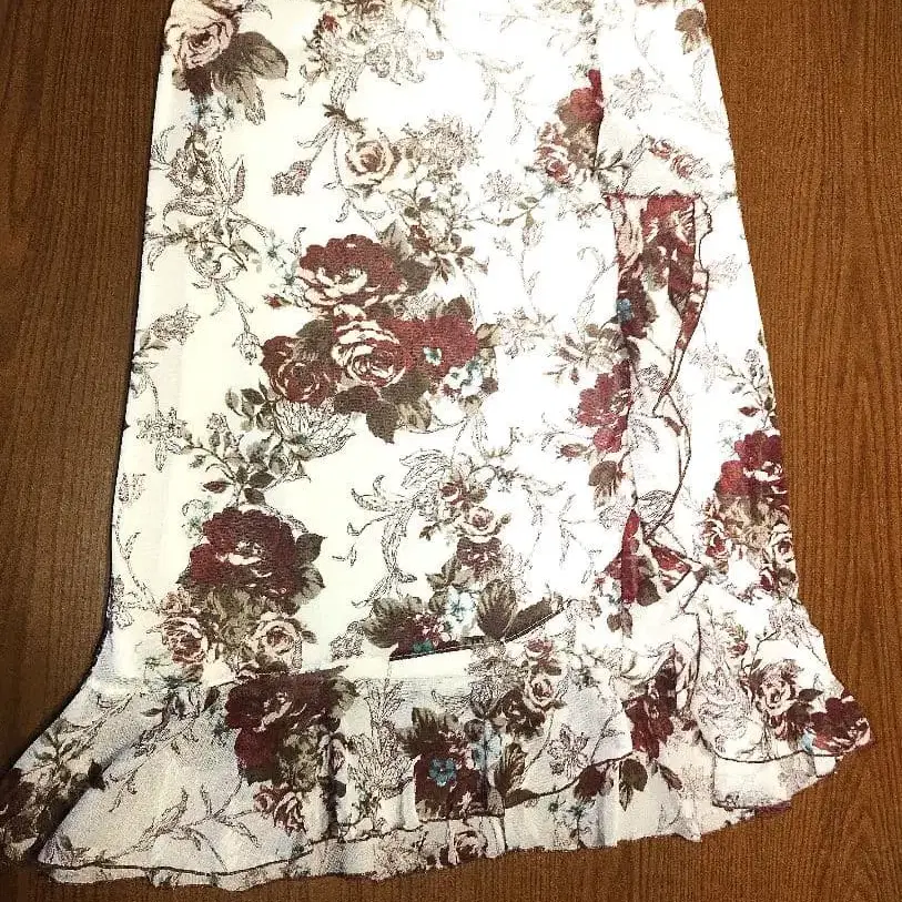 REST ROSE 장미 패턴 엘레강트 스커트 무릎 기장 레드 계열