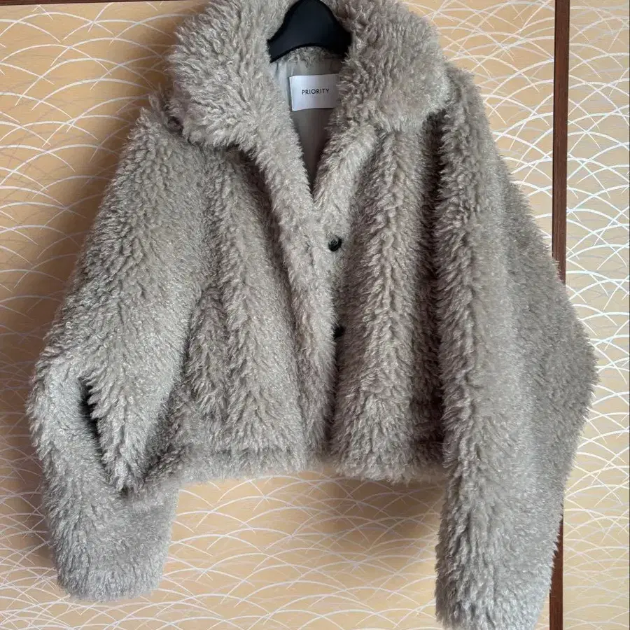 새상품급 PRIORITY 보아 자켓 카라 부착 베이지 크롭 기장
