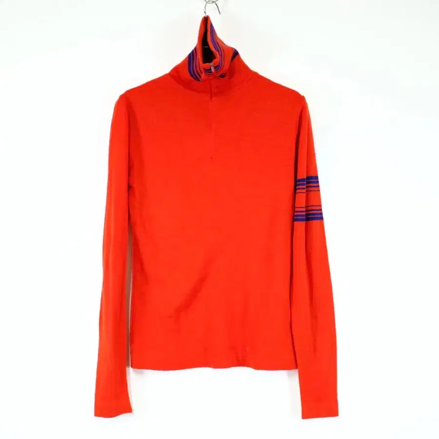 1970s 빈티지 하이넥 지퍼 스웨터 하프 저지 빨간색 구제 의류