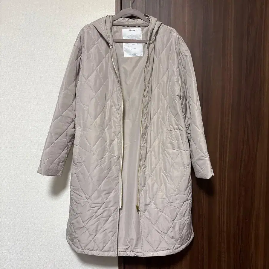 Elura 베이지 퀼팅 다운 코트 후드 부착