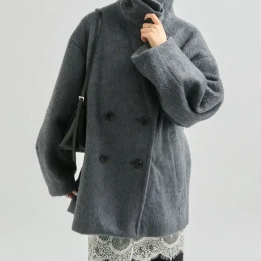mystic 울 혼방 샤기 미들 코트 그레이 아우터 미들 기장