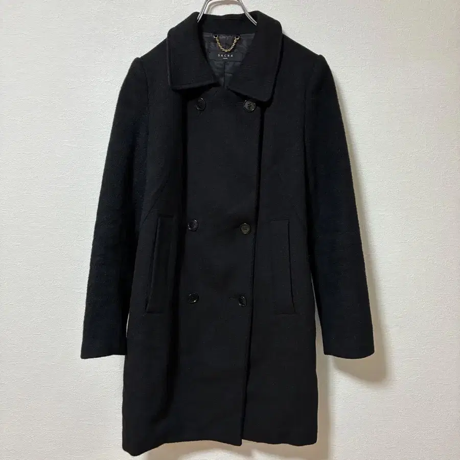 SACRA 블랙 울 혼방 더블 브레스트 코트 여성용 사이즈 38