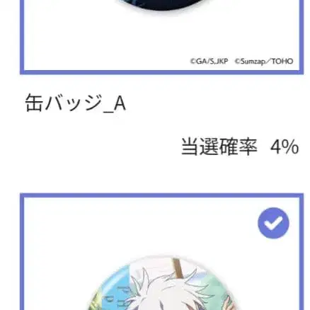 팬파레 복권 주술회전 E상 캔뱃지 고죠 사토루 A C