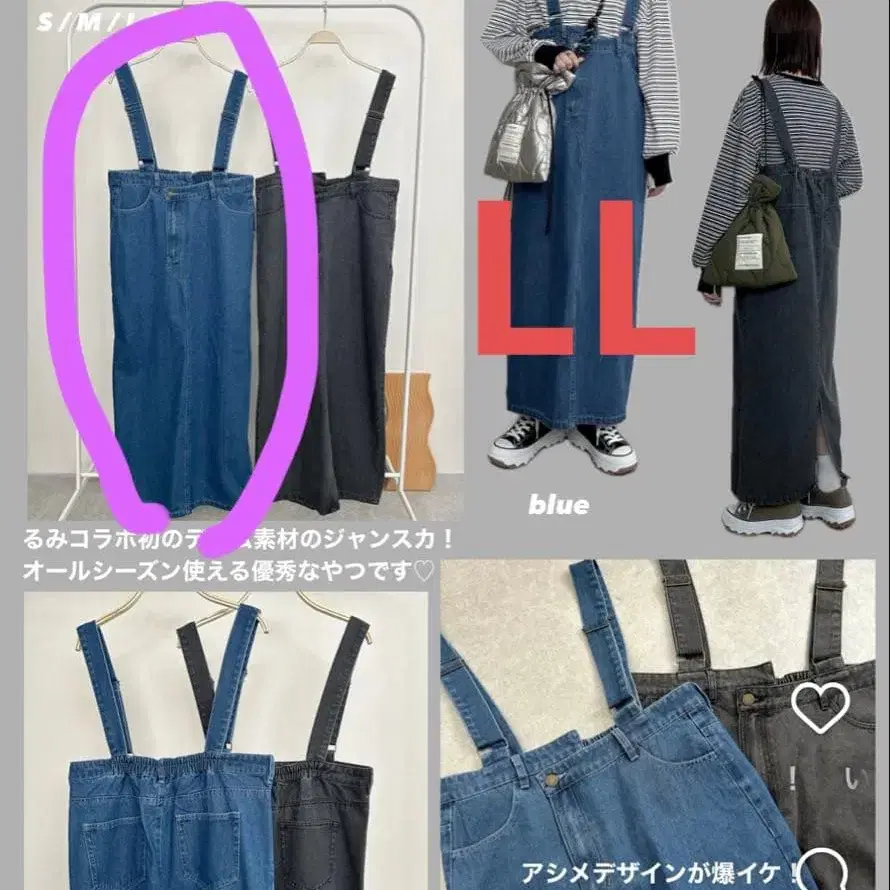 시마무라 rumi 콜라보 오버롤 스커트 LL 사이즈