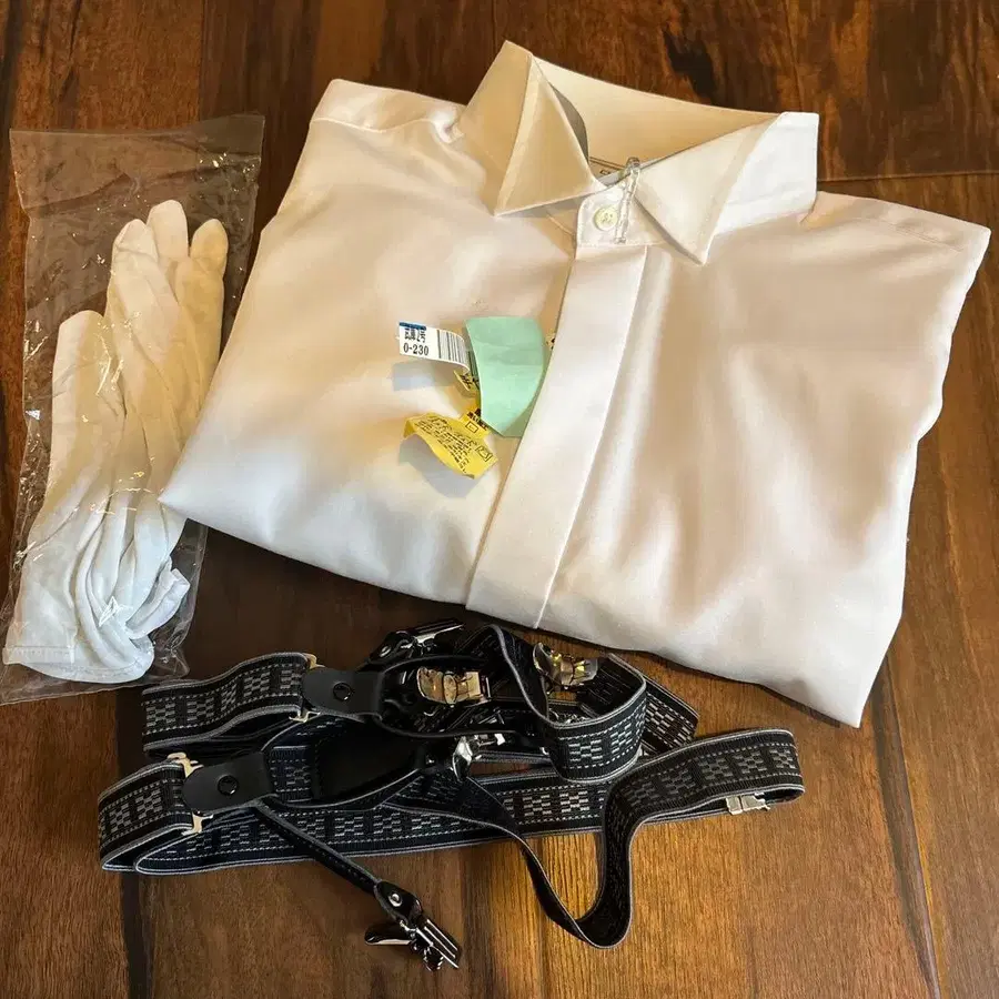 결혼식 신랑 화이트 포멀 셔츠 서스펜더, 장갑 포함