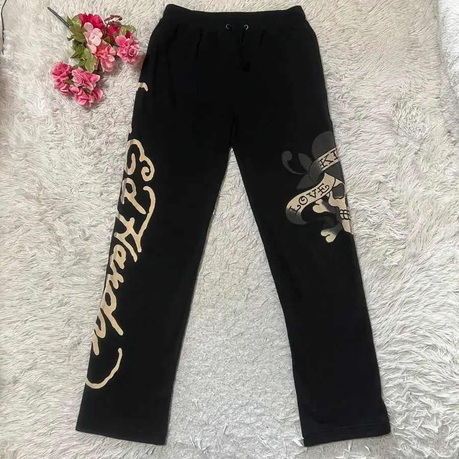 에드하디 스웨트 팬츠 M 블랙 스컬 로고 Ed hardy