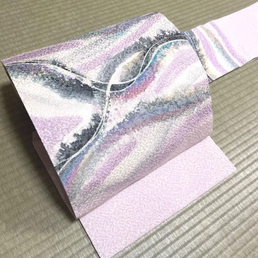 순수 실크 작가명 낙관 있음 나고야 오비 [ 추상 무늬 ]