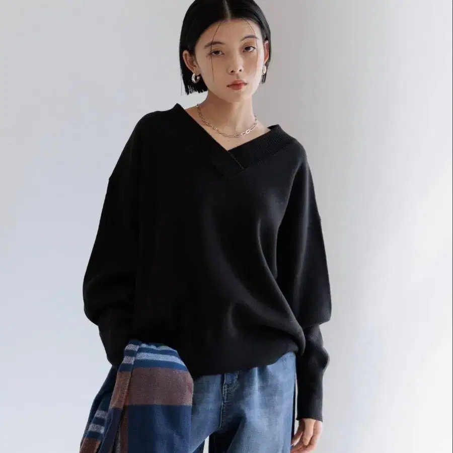 BAYFLOW 힙까지 커버하는 오버사이즈 V넥 니트 블랙