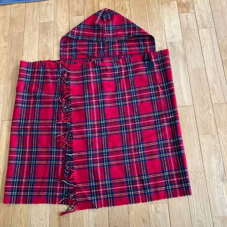 GAL 후드 부착 스톨 레드 계열 체크